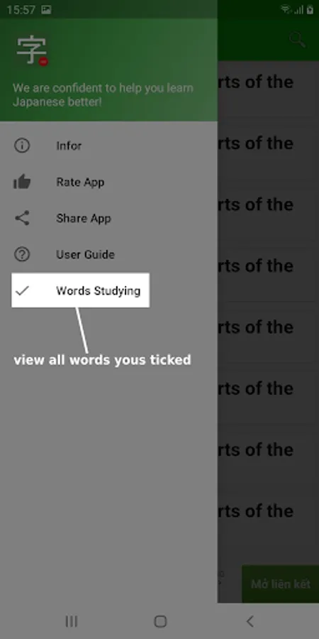 - If you are studying any other books because the app allows you to look up words and remember these words, you just go to the word list you saved then you can study and do the exercises as normal lessons app.