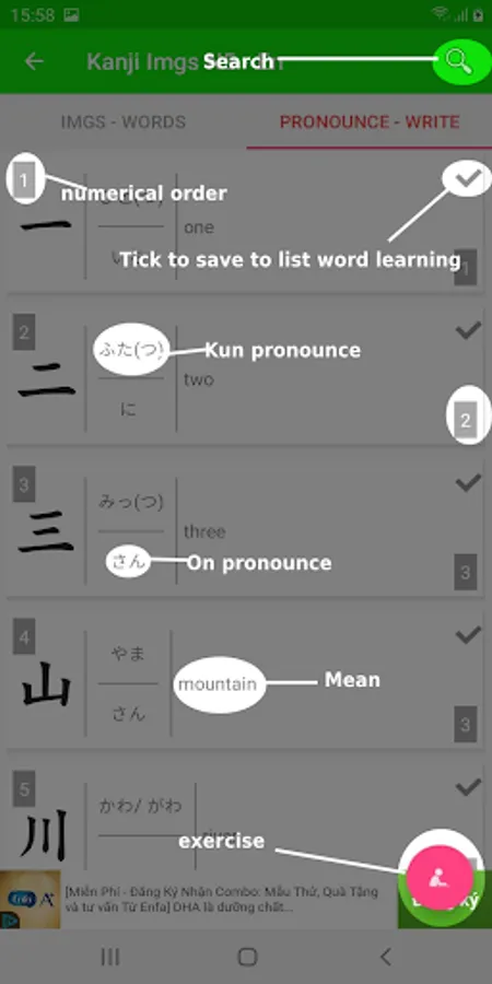- Learn how to write by how the app will run each character and you can practice writing right on the app