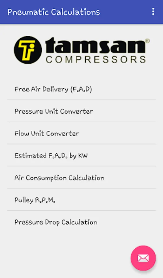 This application powered by Tamsan Air Compressors and helps you to calculate some basic technical values about air compressors.