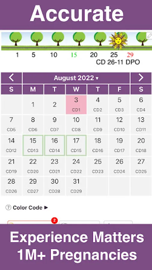 * Color coded fertility calendar: Your period, fertile days, ovulation and more at a glance.