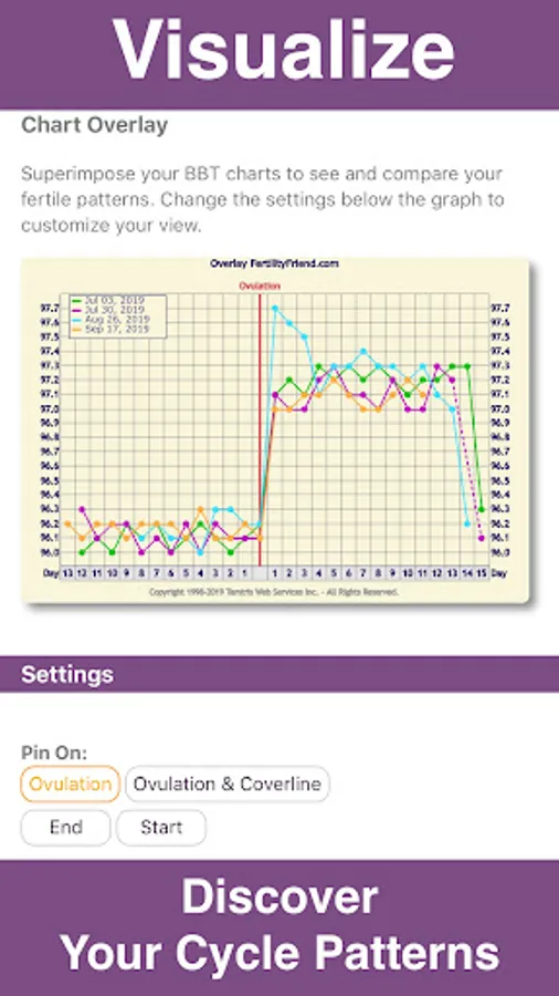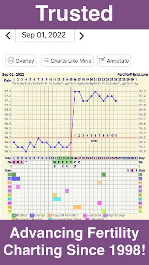Track your period and other fertility signs (basal body temperature/BBT, cervical fluid, symptoms, etc). Fertility Friend will alert you to your ovulation date and the best days to conceive and offer personal, timely insights.