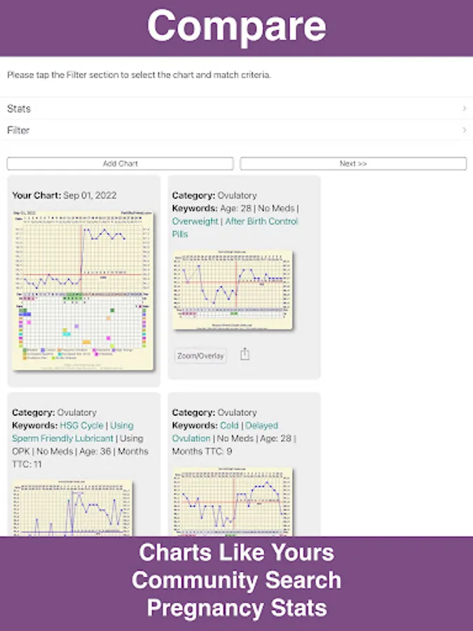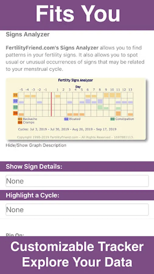 You can get pregnant only a few days each cycle. Fertility Friend accurately determines these crucial fertile days based on a few easy body observations. This app is an advanced ovulation calculator, menstrual calendar, fertility chart and period tracker. It works to help you get pregnant because it interprets your own personal fertility signs. Fertility Friend creates an exclusive fertility chart and ovulation calendar with personalized trying to conceive tips and analysis.