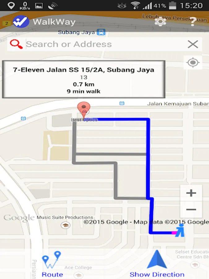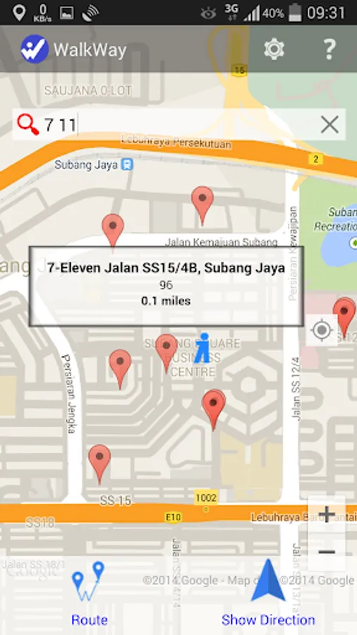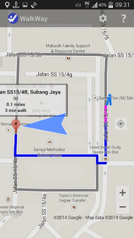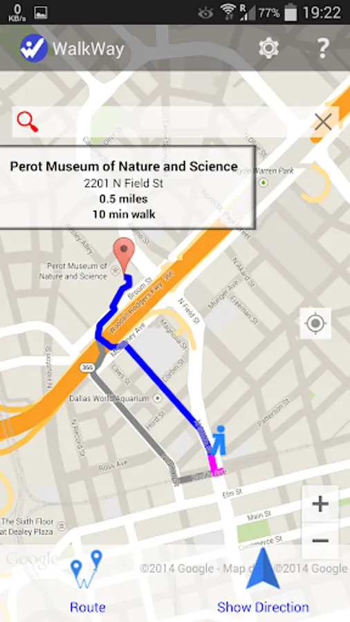 - Estimated distance and time to walk to destination