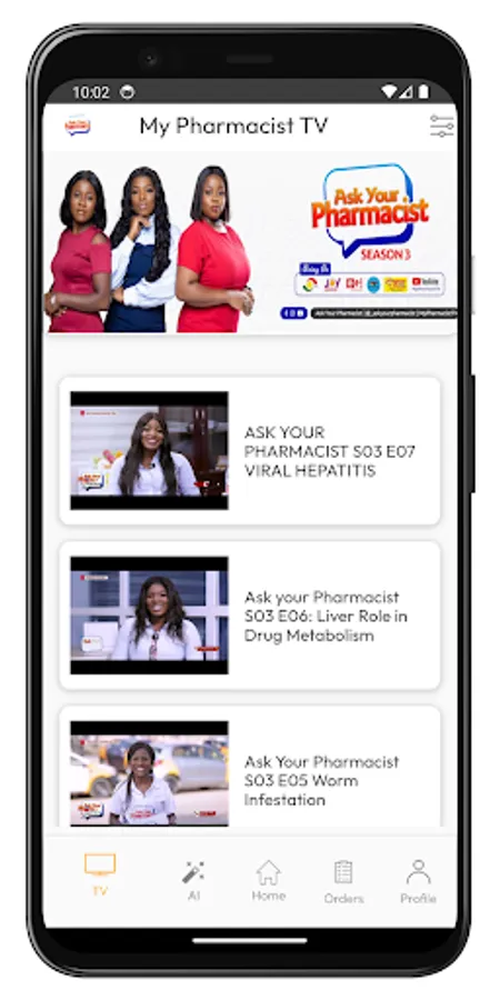 DrugNet TV - This option enables you to watch our educational content on rational use of drugs and other pertinent health topics.