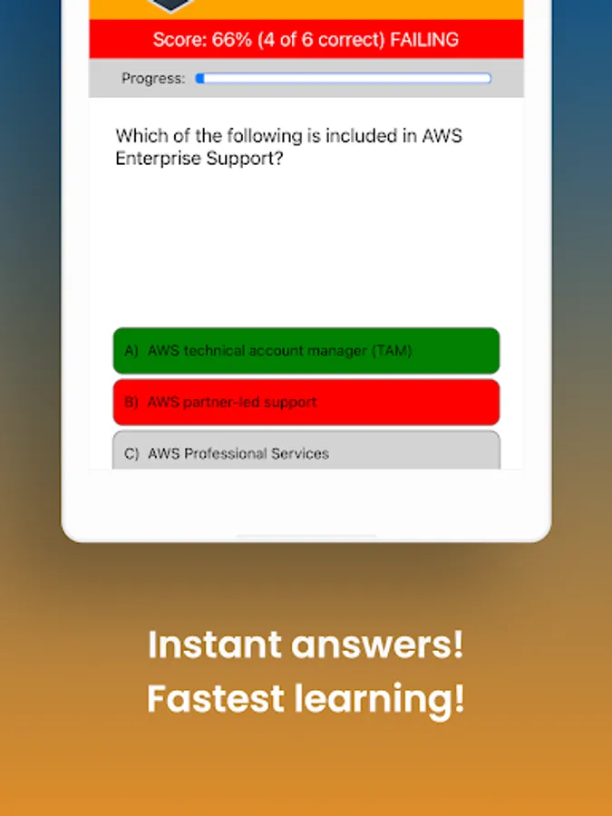 The correct answers are shown instantly for each question, so you learn straight from your mistakes.