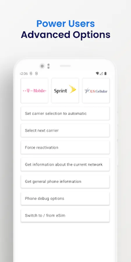 The app provides dialer codes for switching between different networks on fully supported devices. Currently the app only supports Project Fi phones and network.