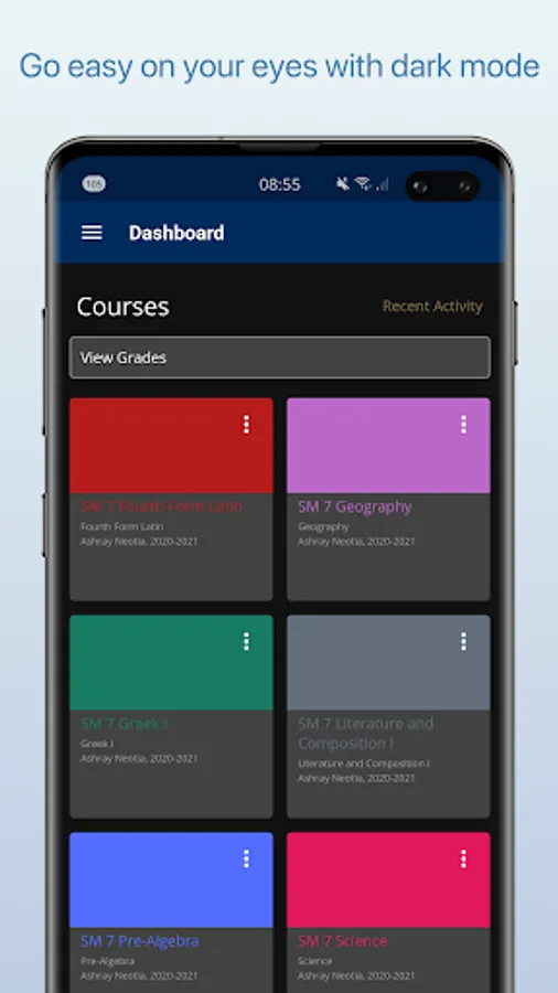 • See any recent activity, such as assignments being created and grade category weights being changed, right from the dashboard
