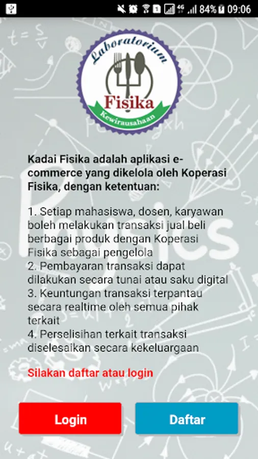Kadai Fisika is an e-commerce application managed by a Physics Cooperative, with the following provisions: