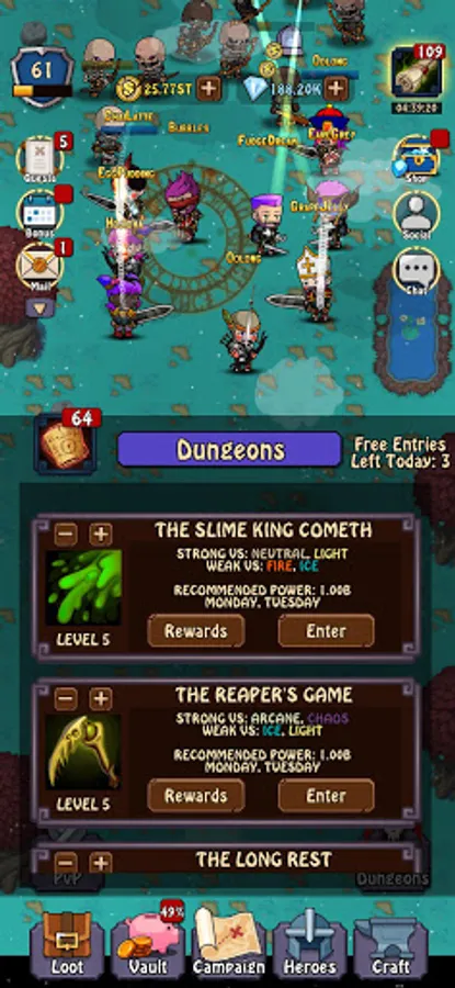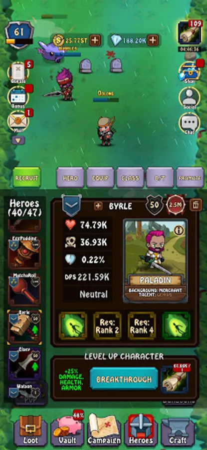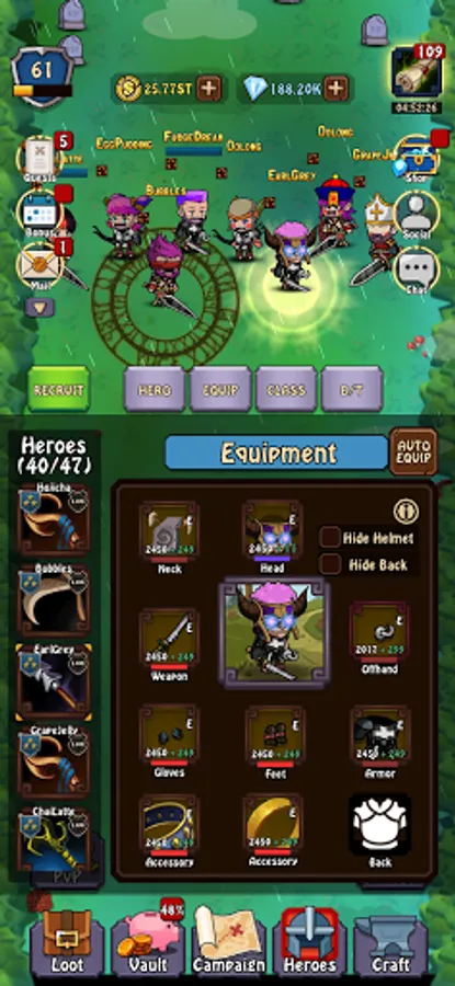Collect components from battle to craft and upgrade items for your heroes! Efficiently craft while offline to maximise profit and fun!