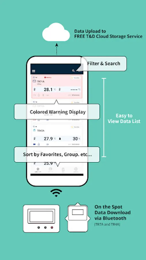 Not only can you directly communicate with a data logger via Bluetooth, but you can also view recorded data uploaded to our cloud-based T&D WebStorage Service.
