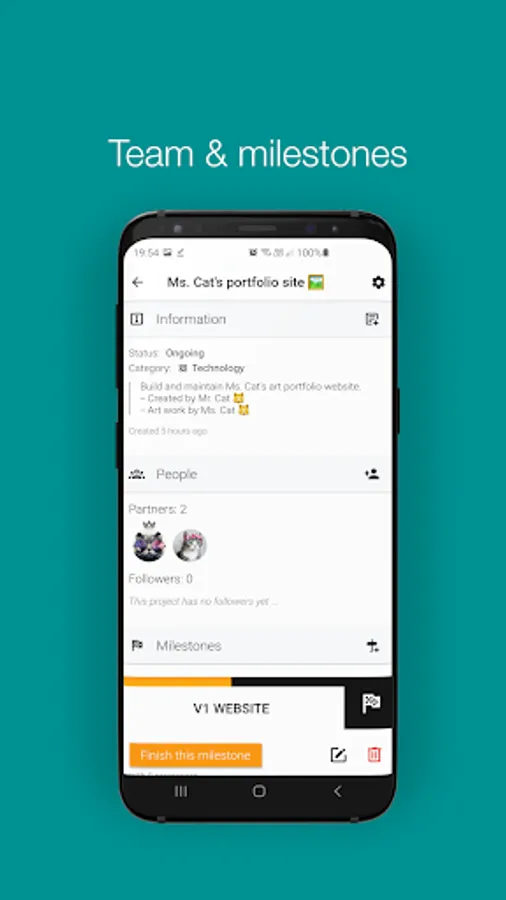 You can easily collaborate a project with your friends by inviting them directly on Strive. If you don't have a partner yet, you can also publish your project and define the ideal partner profile you are looking for so like-minded people could partner up with you in your project.