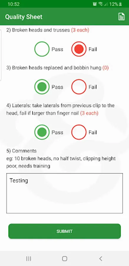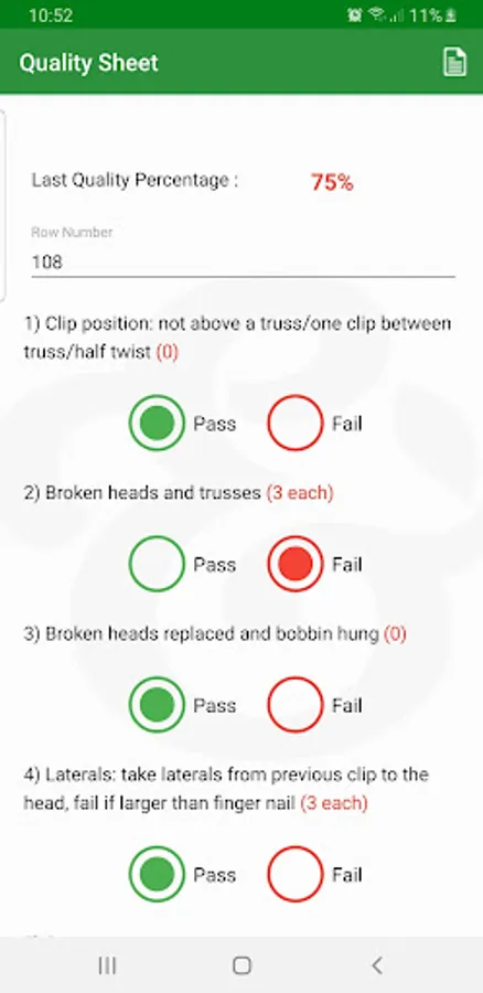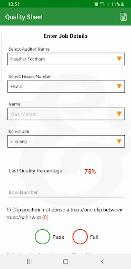 The application is for checking the quality of the different task such as clipping, pruning, deleafing, dropping, twisting and picking. For checking the quality, the application has different forms based on different job type selected. The form has different criteria for checking the quality. This application is designed for T&G FAV site employees only for checking the quality of their site.