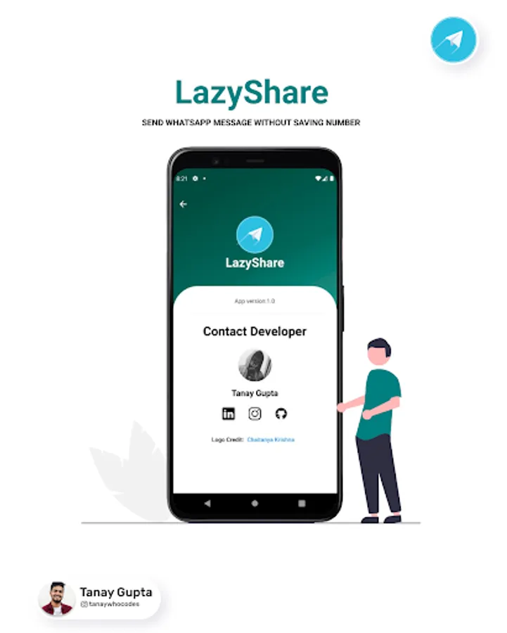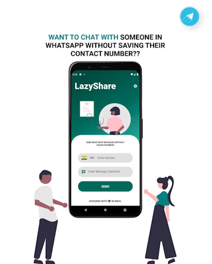 LazyShare helps you to chat with someone directly on WhatsApp without saving phone numbers. Just enter their phone number and you're ready to go. And it's super easy to use and 200% free😎.