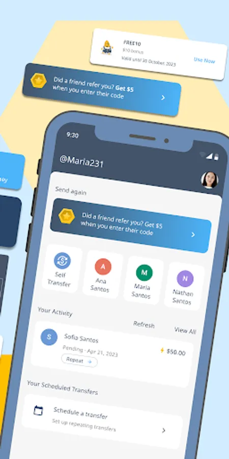 Say goodbye to long wait times! Receive and send money as quickly and easily as texting.