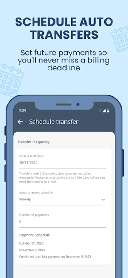 Transfer amounts as low as $10 so you can send when you need to.