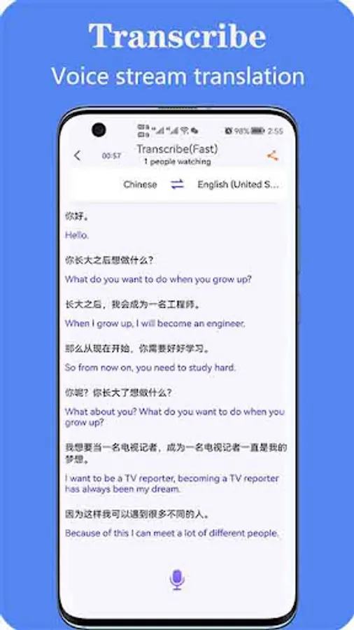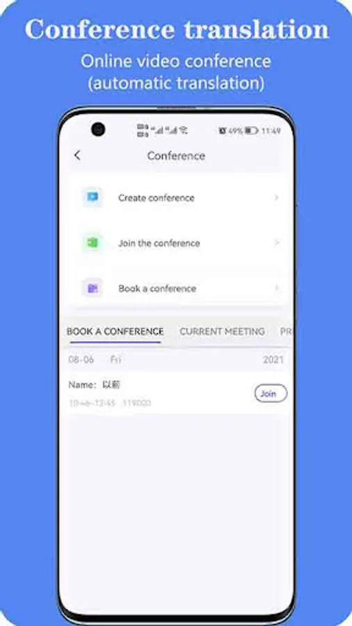 This APP contains a complete cloud conference system. You can hold a multinational conference through this APP, and the language in the conference will be translated in real time.