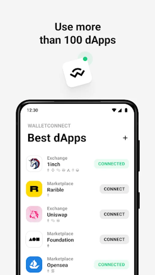 Exchange crypto, buy NFT, Bitcoin in more than 100 different decentralized services such as Uniswap, Opensea, Rarible, Zapper, Curve, SpookySwap, Compound and many more. This is possible thanks to the secure WalletConnect protocol.