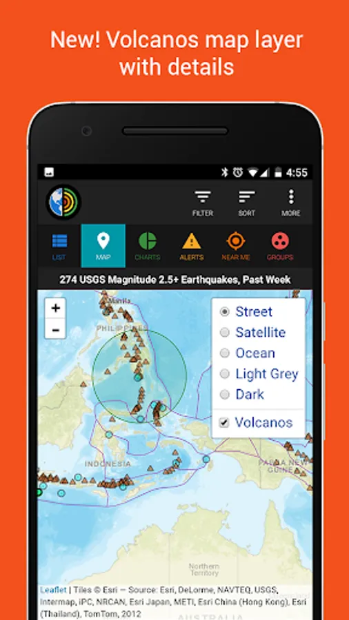 - Custom set main list magnitude values from 1.0+, 2.5+, 4.5+ and significant values