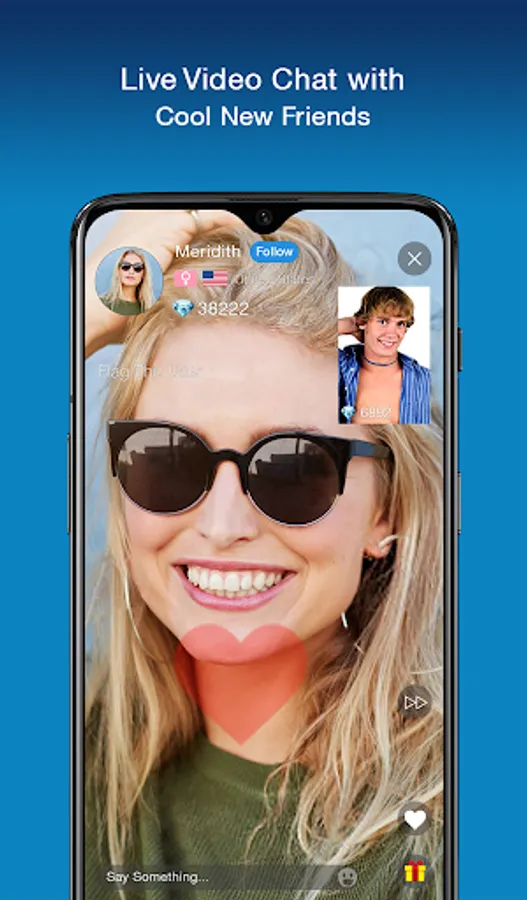 * Live stream video chat with new friends or invite them to an exclusive group chat