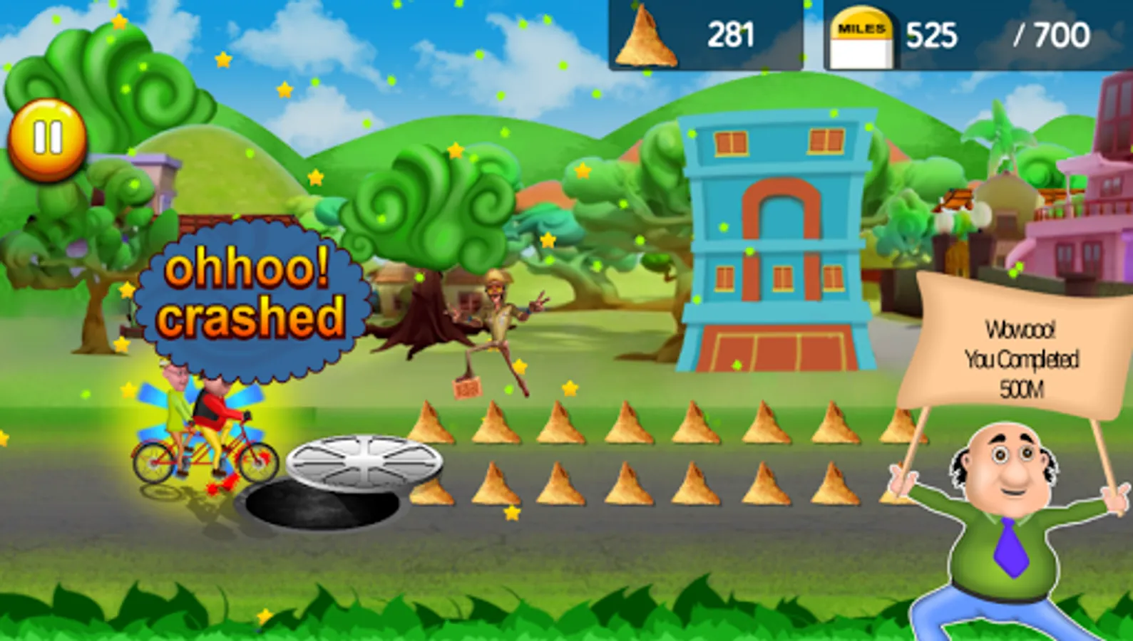 Go on a cycling adventure with Motu and Patlu through the scenic village of Furfuri Nagger! Help them avoid hurdles like motorcars, pedestrians, rocks and help Motu collect his beloved samosa by tapping on the screen…