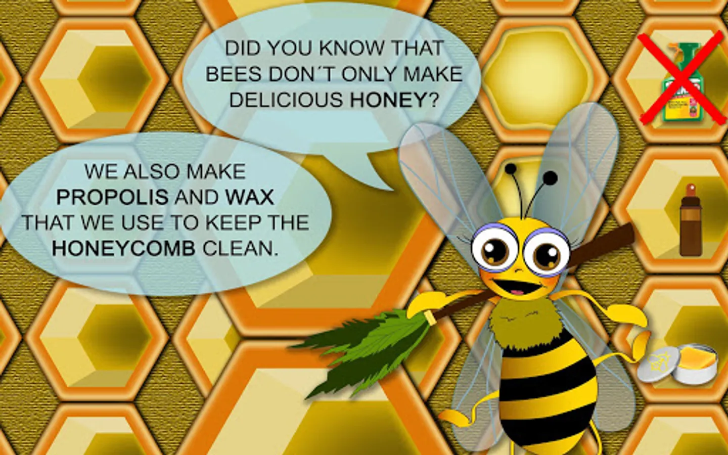 • Get the 18 educational stickers which will explain how is the daily life of the bees