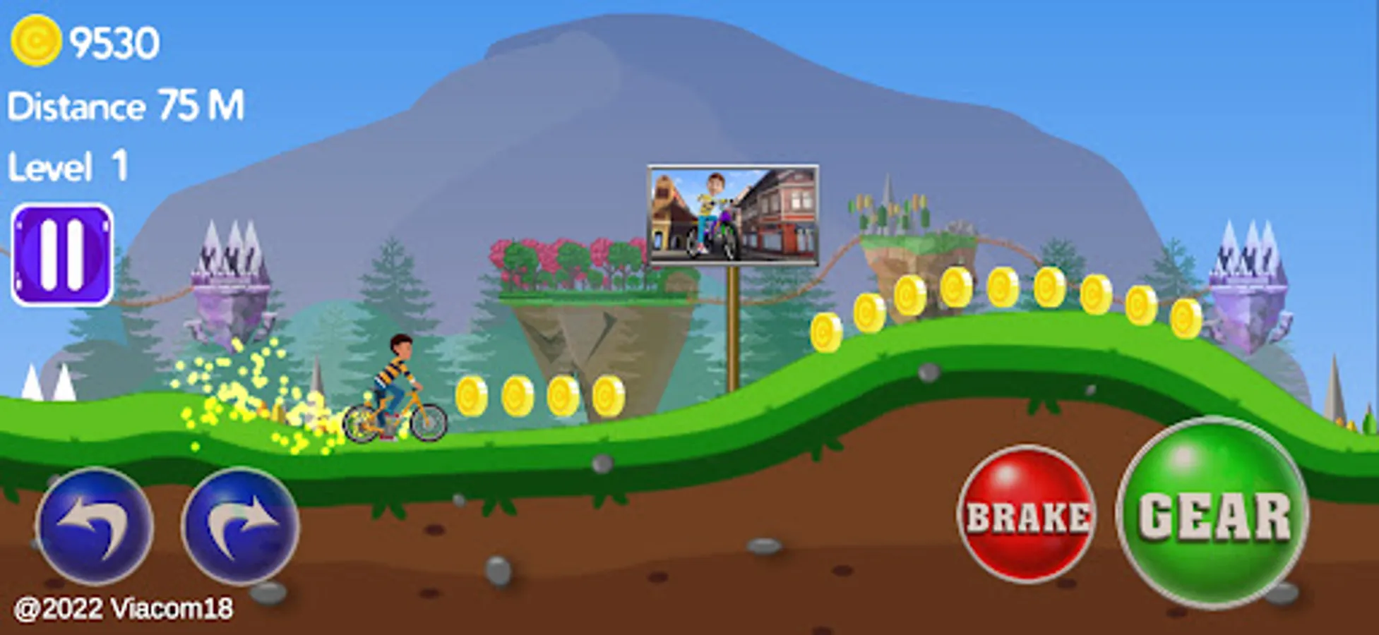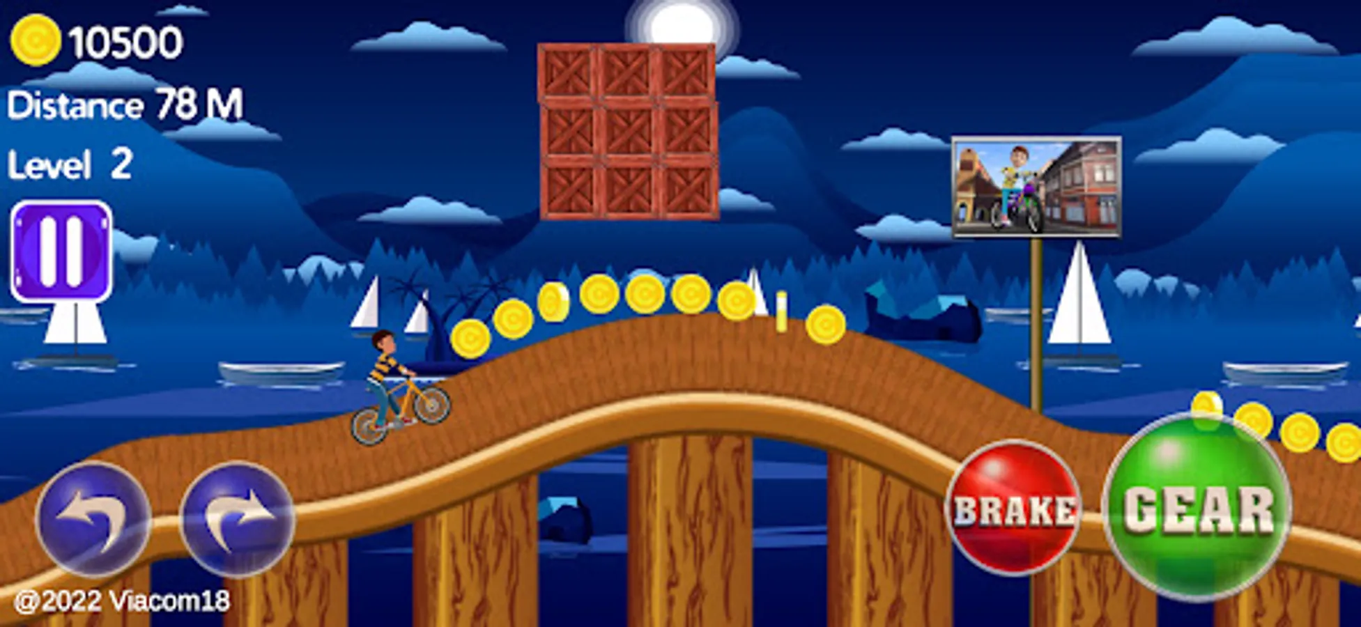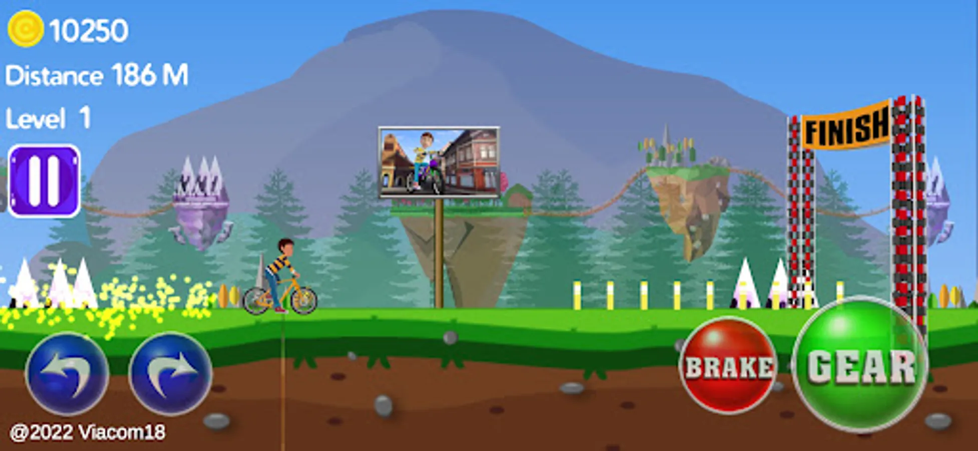 Rudra Offroad Bicycle Racer is a racing game. In this game, Rudra collects coins while riding a cycle. This game has to be controlled with brakes and gears.
