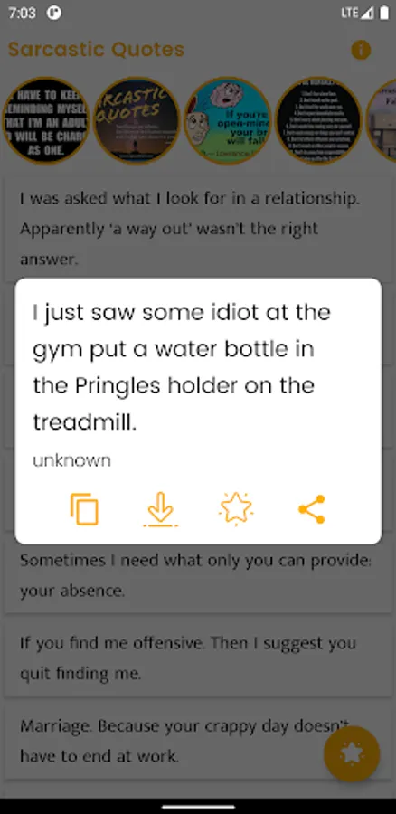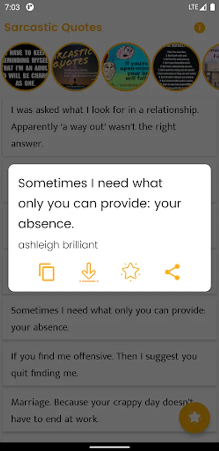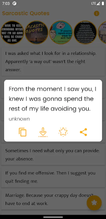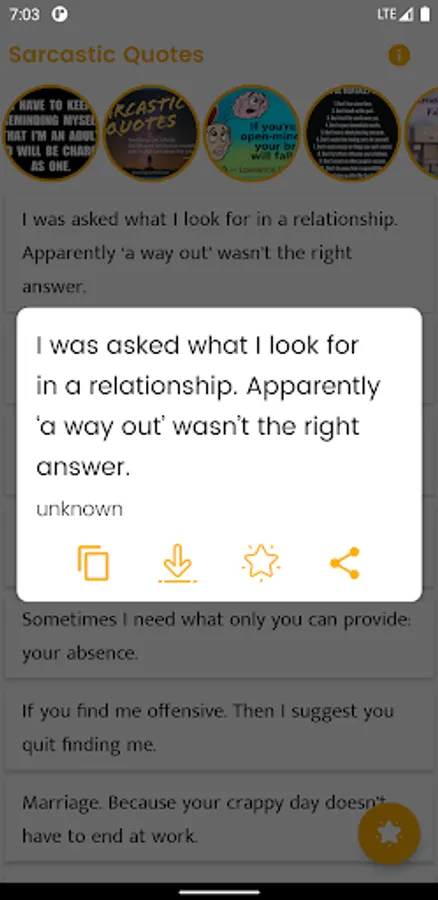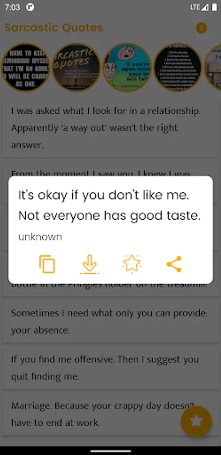 - Favorite or Unfavorite Sarcastic Quotes Options