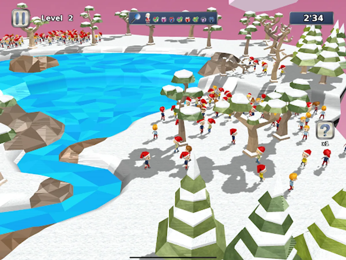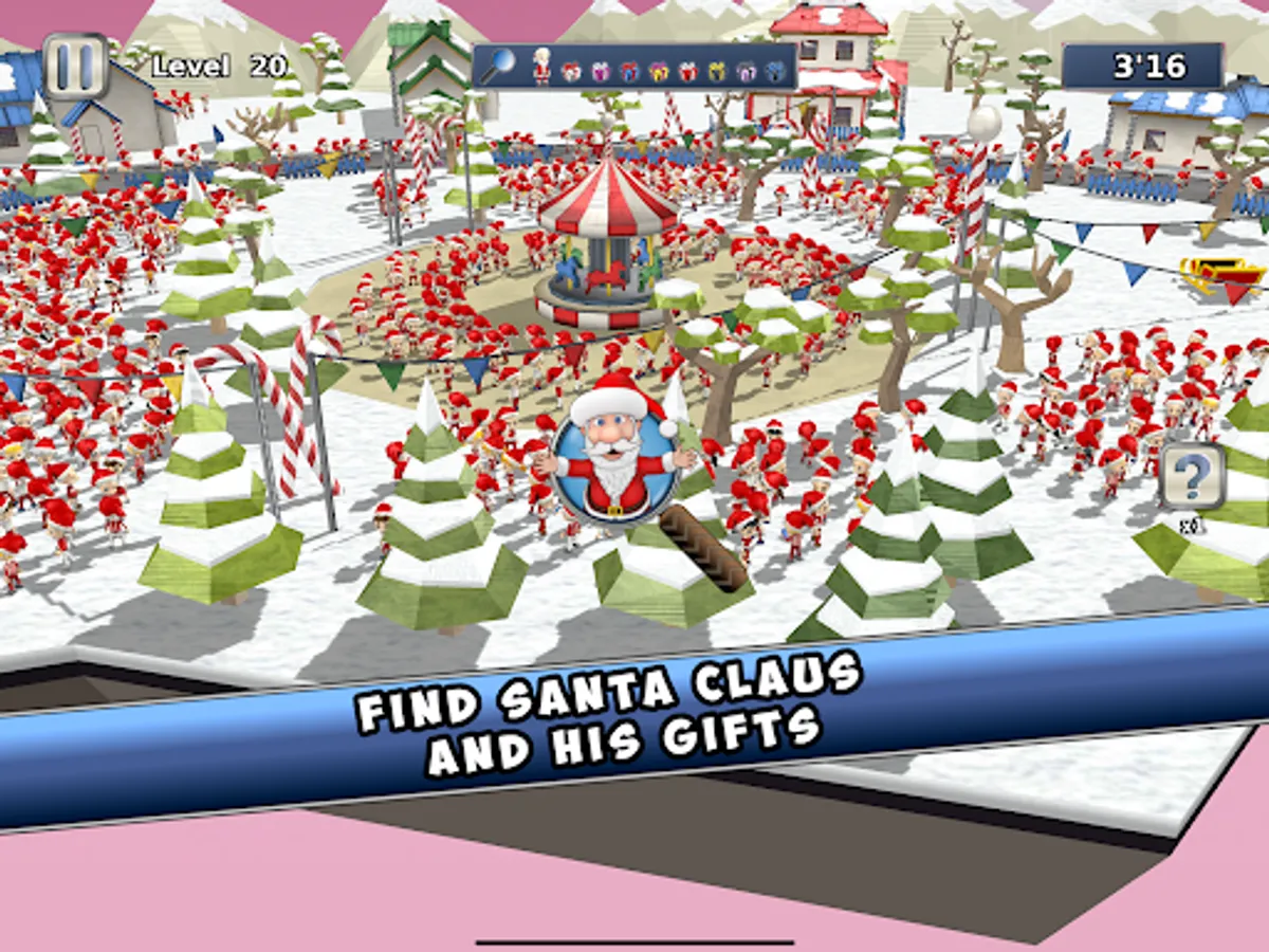 To the rhythm of enchanted music, you will have to find Santa Claus among thousands of elves all dressed in a similar way.