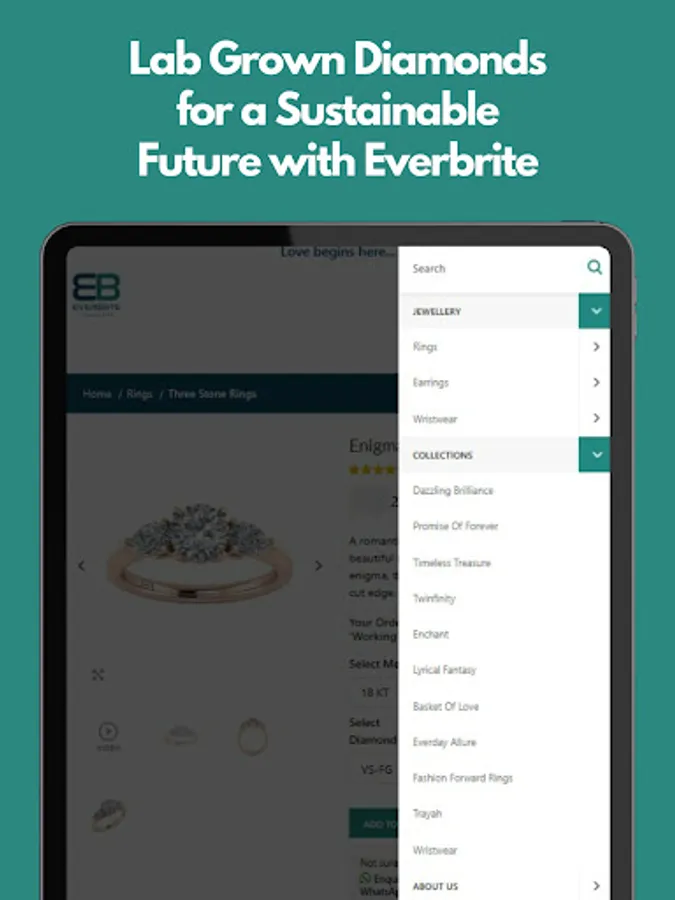 Everbrite Jewellery is a new-age start-up brand that offers modern lab grown diamond jewellery for those who are looking for affordable luxury. Founded in November 2020, Everbrite combines technology and contemporary design to bring to life one-of-a-kind diamond jewellery. The brand offers a range of pieces from everyday wear classics like tennis bracelets and stud earrings, to statement-making pieces like one carat necklaces, engagement rings, and unique eternity ring designs. The lab grown diamonds used in Everbrite's jewellery are not only more sustainable but also more affordable, making purchasing diamond jewellery a reality for everyone. Everbrite's commitment to sustainability and customer-centric approach is evident in every aspect of their business, from the use of eco-conscious packaging to the planting of a sapling with every piece of jewellery sold. With its avant-garde technology, gorgeous designs, skilled craftsmanship, and dazzling lab grown diamonds, Everbrite Jewellery is a one-stop-shop for all your diamond jewellery needs.