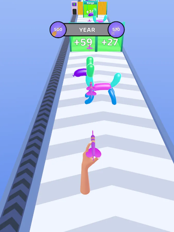 Embark on an exhilarating journey through time in Balloon Dart Runner, the ultimate fusion of precision, strategy, and action! Step into the shoes of a skilled dart thrower and explore a whimsical world filled with shape balloons, glittering diamonds, and mysterious year gates.