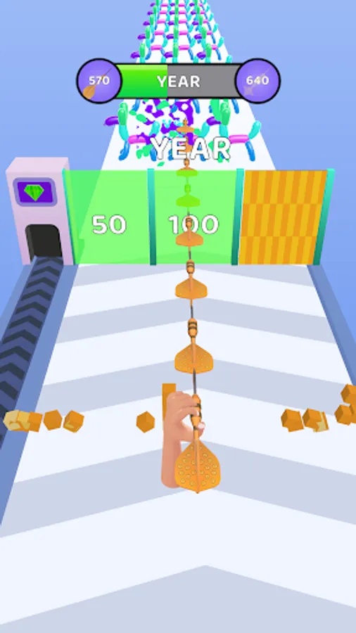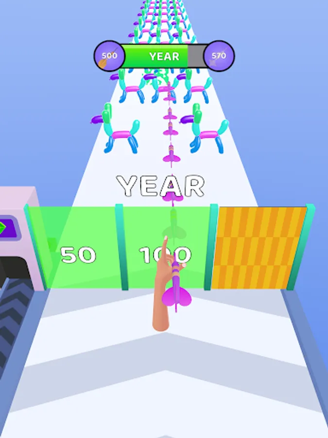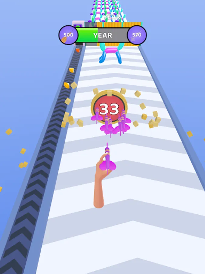 Evolve Your Dart: Journeying through year gates offers an opportunity to enhance your dart's capabilities. Evolve your dart to make it faster, more accurate, and capable of effortlessly breaking through obstacles like dart boards.