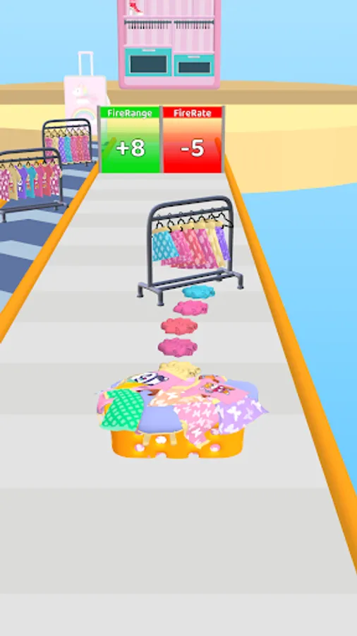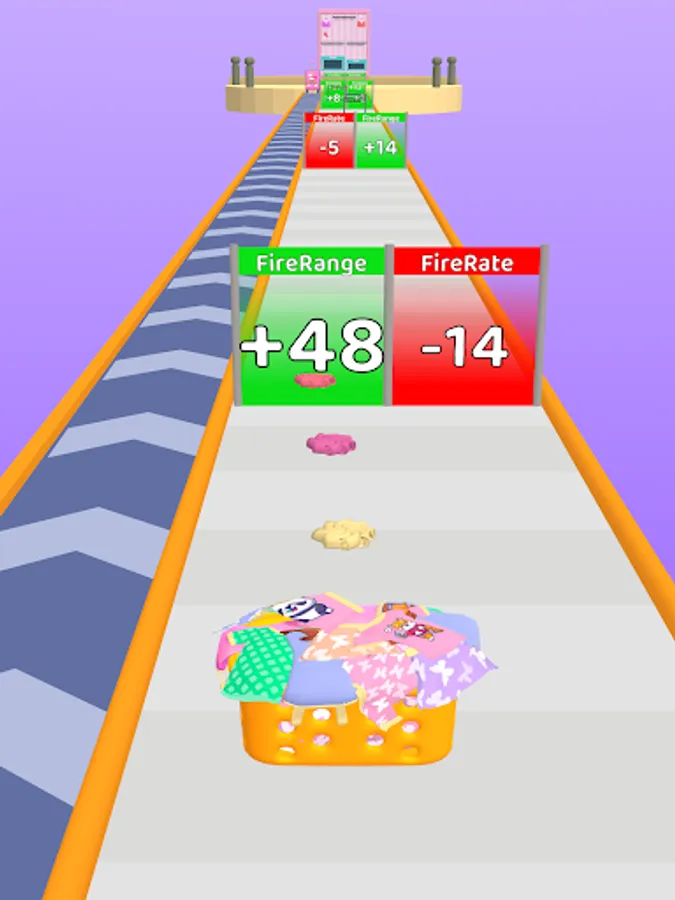 Shooting clothes at the multiplier gates will not only grant you points but also increase your shooting speed and range. The faster and farther you can shoot, the more rewards and clothes you can collect!