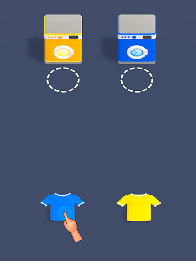 To do this, simply use the intuitive drag-and-drop controls to pick up a piece of dirty clothing and toss it into the washing machine of the corresponding color.