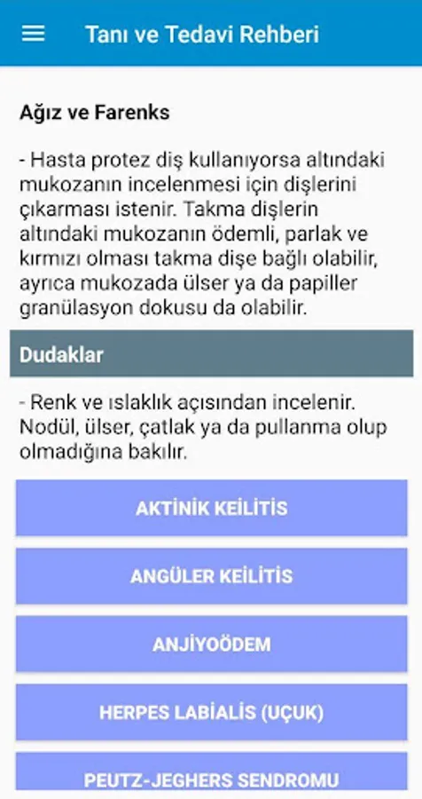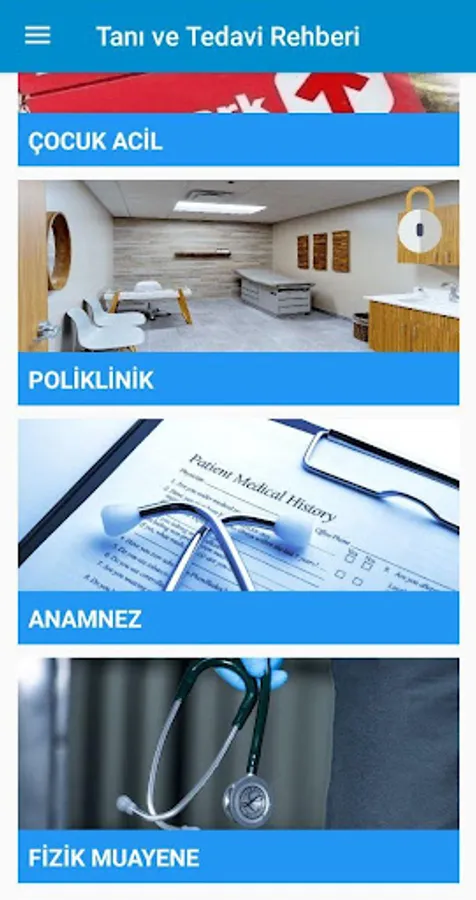 Apart from adult and pediatric emergency diseases, the outpatient clinic category that can be used as a doctor's prescription assistant in family medicine will be added to the application in the next updates. Medication guide information, including contraindications, can be viewed by clicking on the drugs mentioned in the application. In addition to disease and treatment information, there are also anamnesis and physical examination sections in practice.