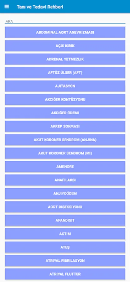 In order to guide physicians in their professional lives, summary information of common diseases and the mobile application that leads physicians to diagnosis and treatment have been compiled by physicians from various current sources. In practice, the diagnosis and treatment of 50 emergency diseases were shed light on, and the symptoms of the disease and ready-made prescription examples that can be used in practice are included. It is planned to add more diseases to the application with future updates in the coming days.