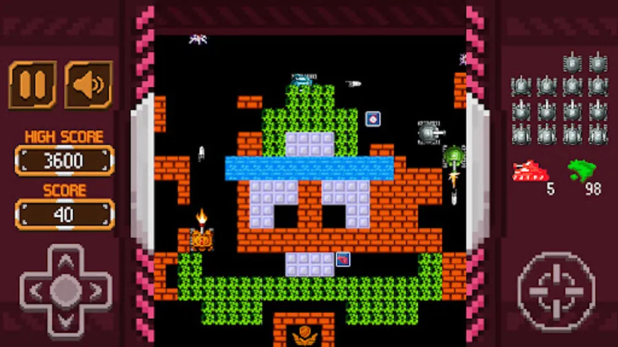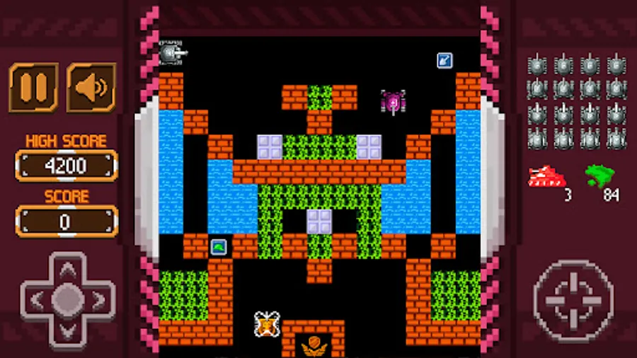 You have to control a tank, and then destroy enemy tanks in each level, which enter the playfield from the top of the screen. The enemy tanks will try to destroy the player's base (represented on the map as a bird, eagle or phoenix), as well as the human tank itself. As soon as the player destroys all 20 enemy Tanks, A level will be completed, but the game ends if the player's base is destroyed or the player loses all available lives.