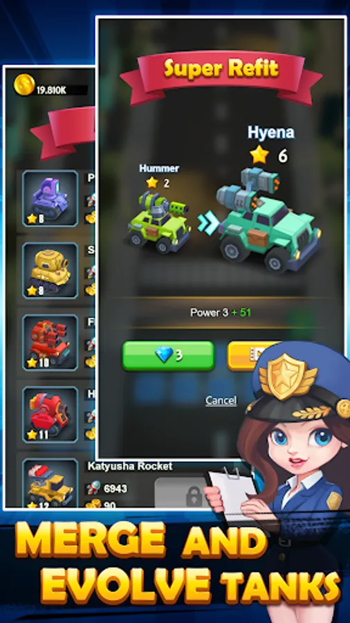 A variety of tanks and vehicles to wipe out zombies in bullet rain, explosions, lightning, lasers and flames