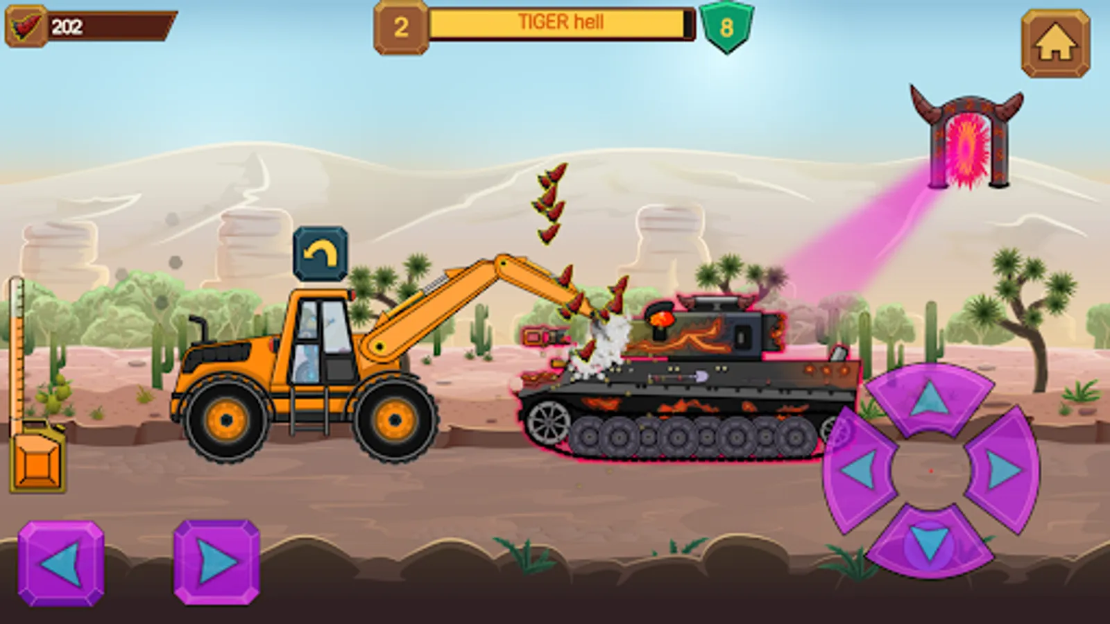 ● As you progress through the tank game, you can collect rewards and currency to buy new vehicles and upgrade their power. Unlock advanced excavators and weights to inflict even more damage on the invading forces.