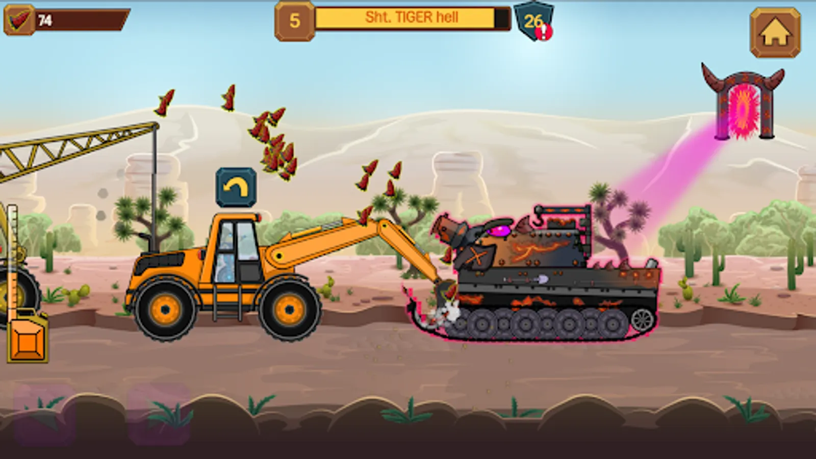 This tank game will help you to relax and have fun. In the game you can crush enemies with the help of excavator and big weights.You can pump your weapons and fuel supply. On the map there is a refueling station that will allow you to fight the enemy again and again.