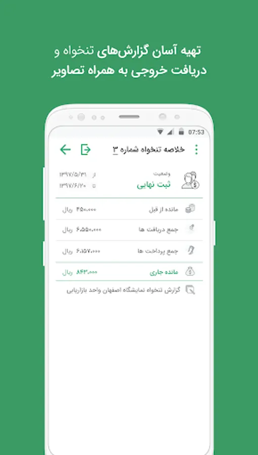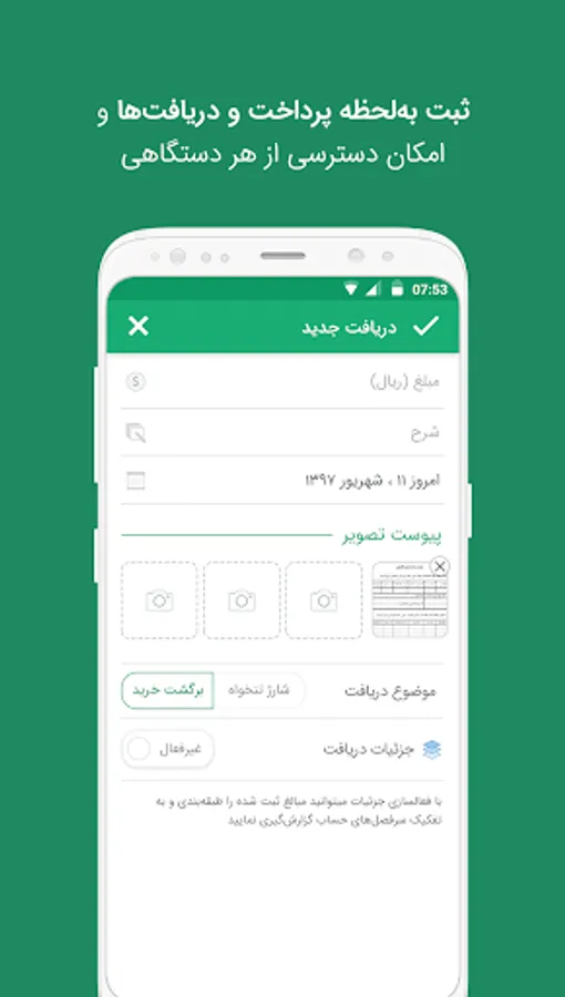Tankhah Gardan is an online software for recording receipts and payments and managing petty cash reports. You can record all the incurred expenses and categorize them into the desired categories. Tankhah Gardan is available on Android, IOS and the web.