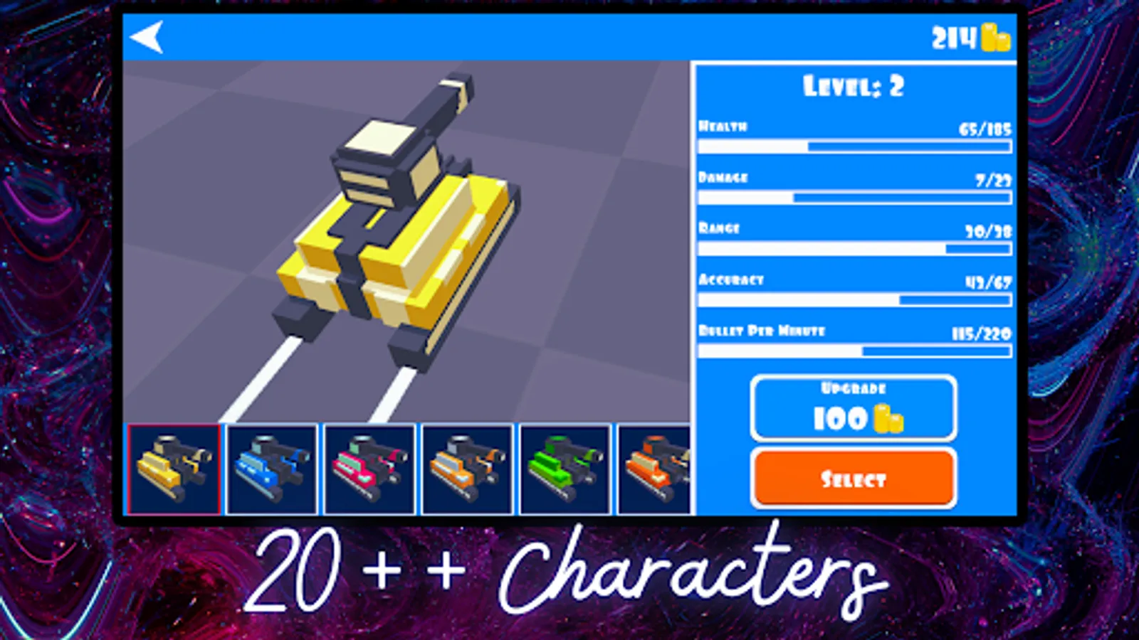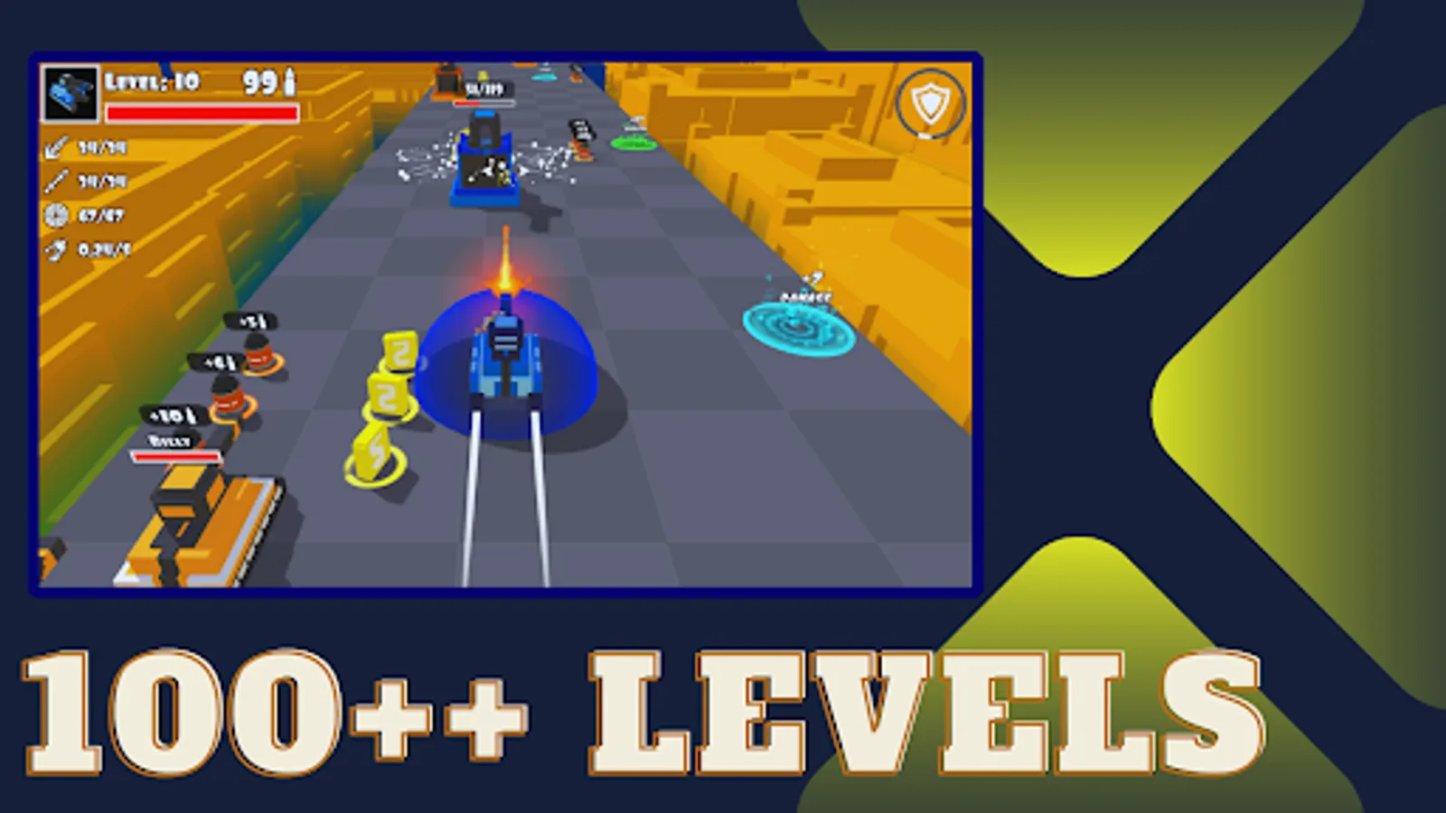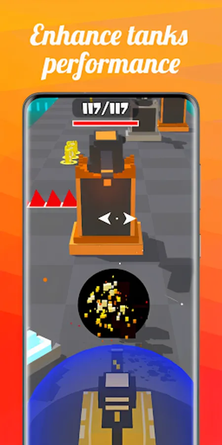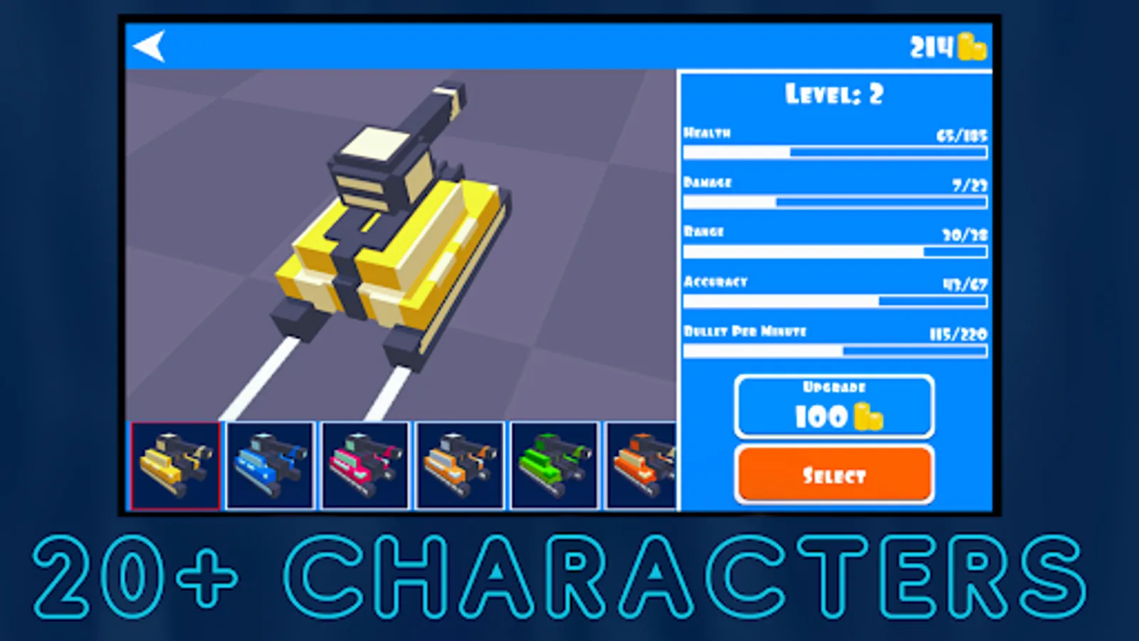 Enhance your tank's performance by collecting valuable boosters along the way. Bolster your stats, from damage to health, shooting range, accuracy, and fire rate. Acquire coin items to unlock and upgrade new tanks and employ magnet items to draw in scattered coins effortlessly. Amass bullets to expand your ammo supply and secure shield items for added protection against adversaries. Navigate through diverse levels filled with challenges, strategy, and excitement, striving to conquer each stage.
