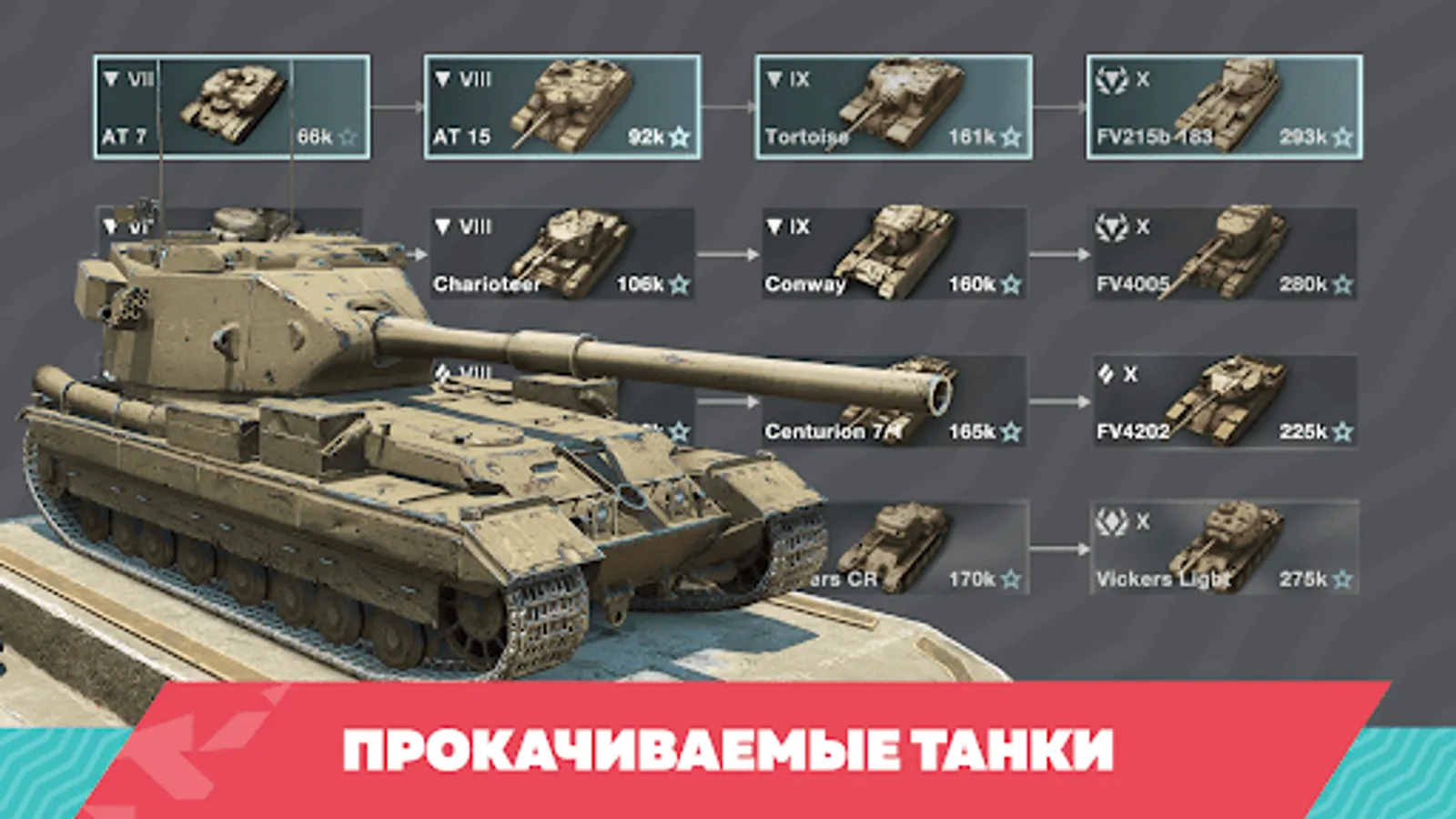 Choose a tank and jump into PvP battles! And then - improve your cars: change guns, install equipment, train the crew. Research new tanks, progressing from Tier I light vehicles to Tier X crushing vehicles. Switch from light to medium and heavy tanks, test long-range tank destroyers in battles, and you will see that each vehicle requires a special approach and its own combat tactics.