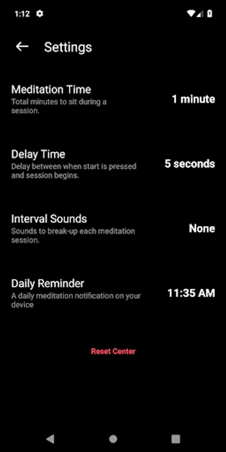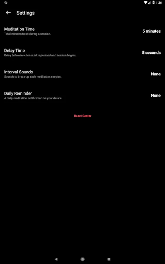 If your practice includes different stages within a single session, you can set interval chimes to ring (traditional singing bowl sound). You can sit for as short as 1 minute or as long as an hour (using repetitive timers for sitting even longer).