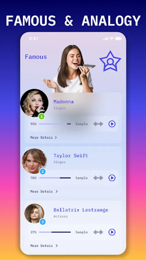 Discover how your voice stacks up against celebrities with ECHO. Which celebrity do you sound like? ECHO's fun and entertaining experiment might reveal that you possess the voice of a rockstar or a famous actor. Explore your love compatibility with different voices and see how well you match up with your favorite stars.