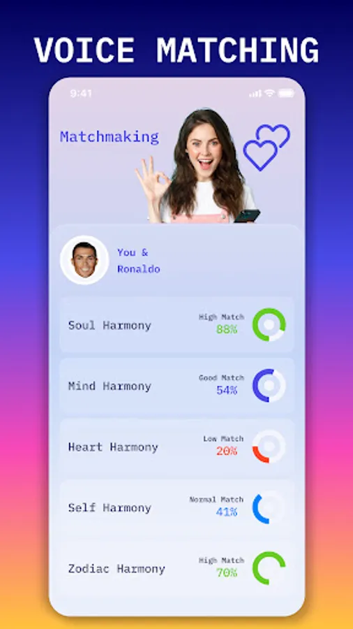 If you're in the excitement of a new relationship, or if you're experiencing tides even when you're inconsistent love, how about an analysis to support you? Is the other person really the right partner for me? If you're wondering, it's time to use AI Matchmaking, which embellishes the app. How compatible are you and your partner's voice with your Soul, Mind, Heart, Self, and Zodiac harmony charts? You will be amazed at the results! Discover the celebrities who look the most like you. Compare yourself with who you want from these celebrities.