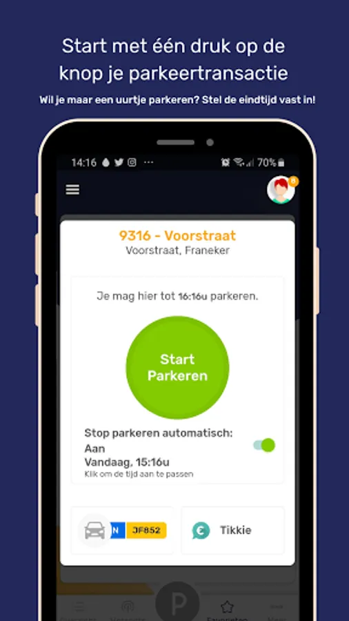 After you have downloaded the parking app and created an account (completely free!), you can start your parking action. TanQyou Park looks for the right parking zone for you based on your location, based on the automatically detected location. & Nbsp;