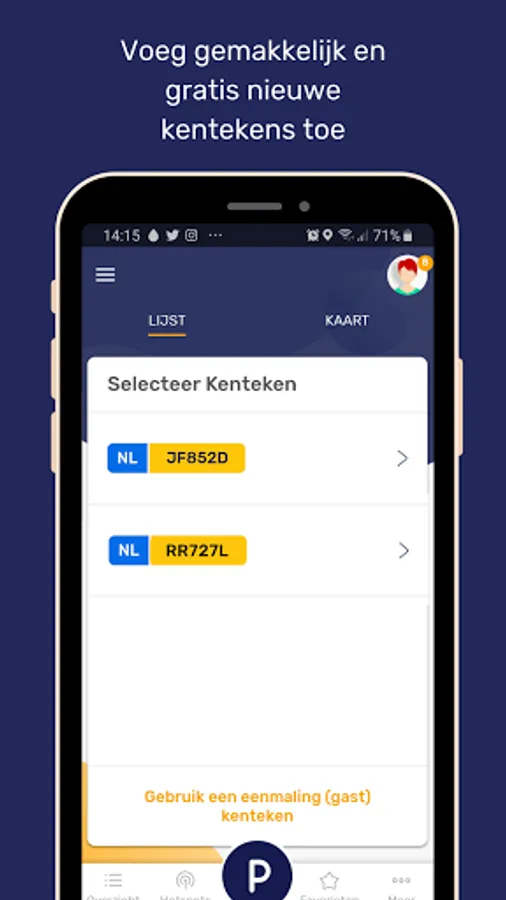 Are you traveling with your partner's or a colleague's car? No problem with our app! Even then you can easily park with TanQyou Park by our & lsquo; guest parking & rsquo; function. You enter the license plate of the borrowed vehicle and then easily start the parking campaign.