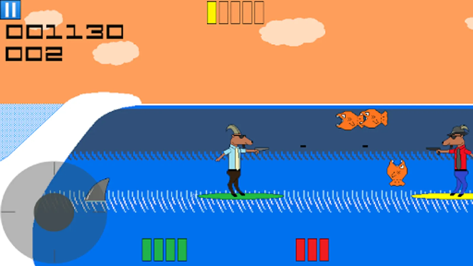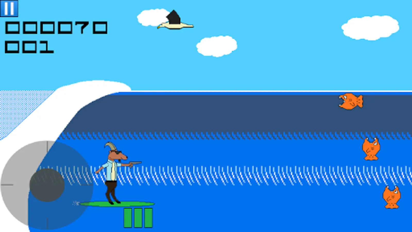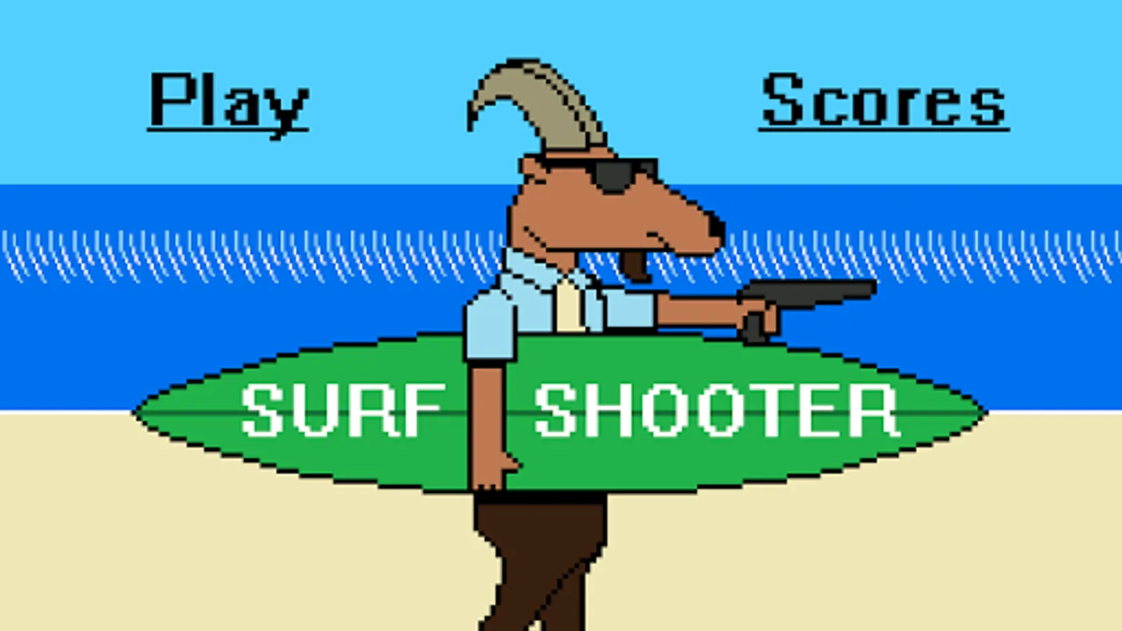 Ride some gnarly waves while blasting away at the deadly ocean life and territorial surfers in this fast-paced, retro style arcade game. The hero of this saga is a business goat who moonlights as a laser-firing surfer, the Surf Shooter!