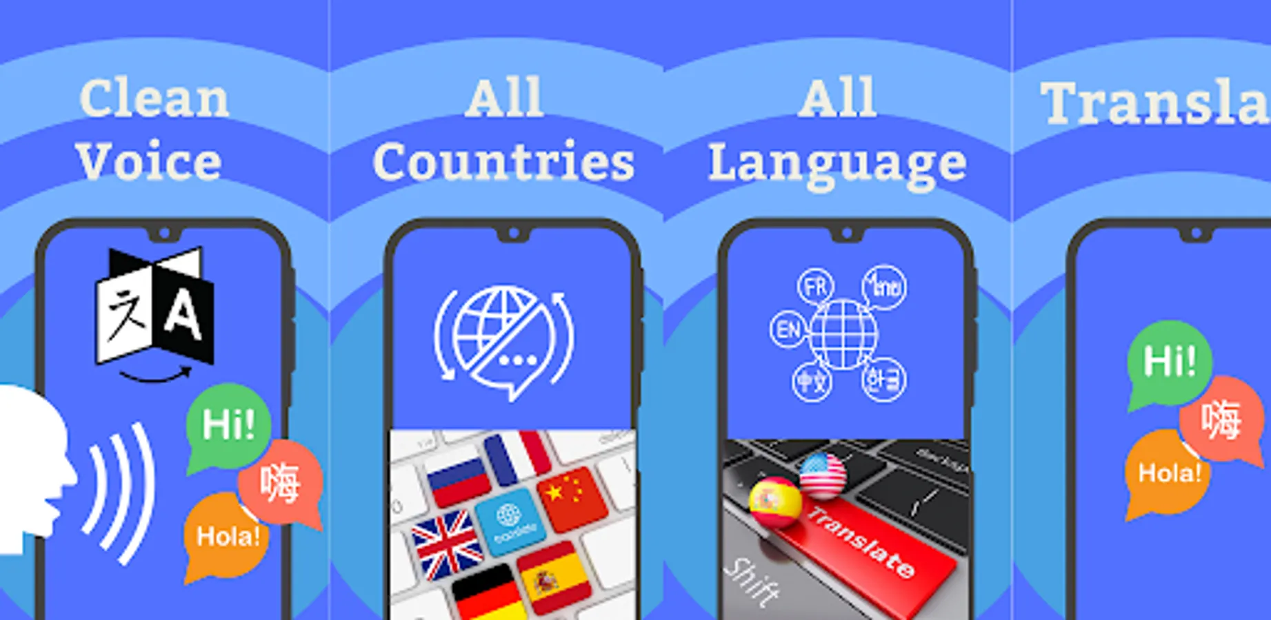 Voice translation in real time into text and audio.