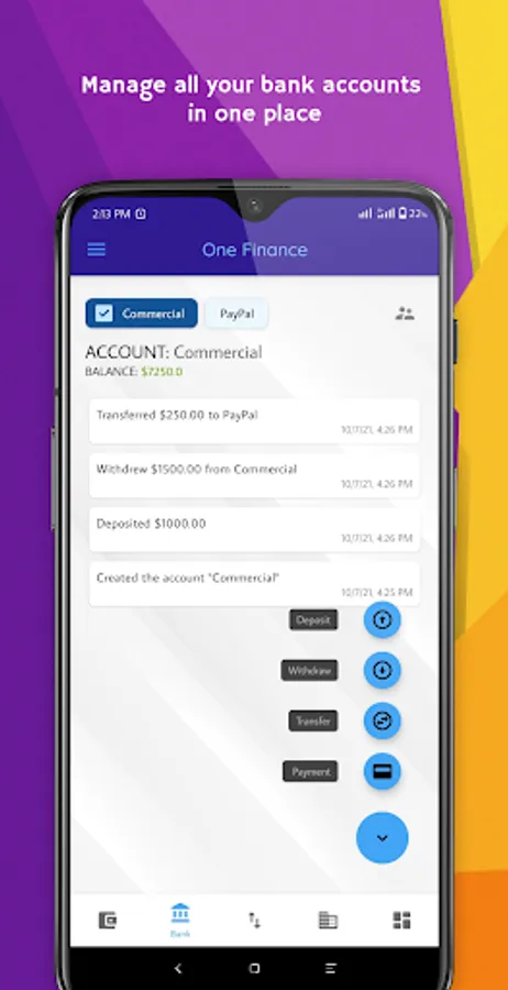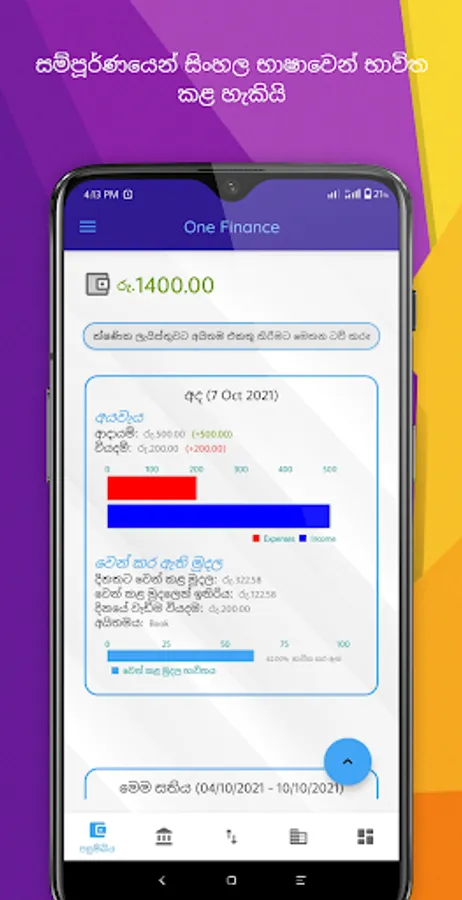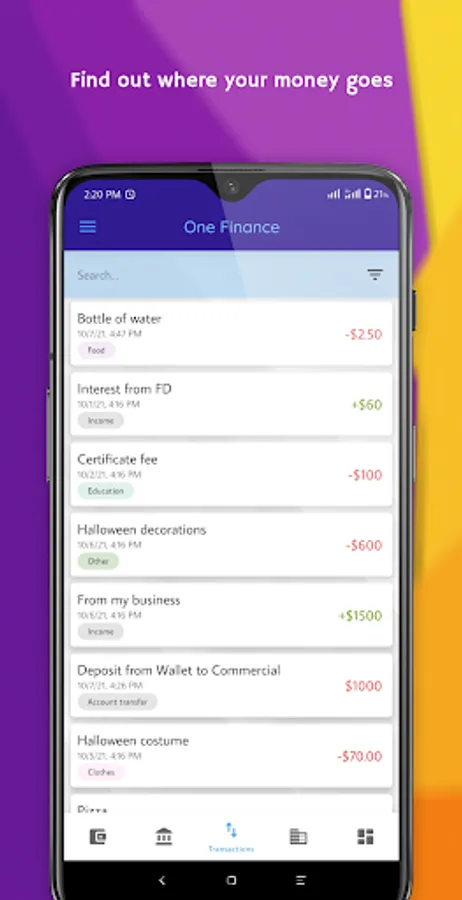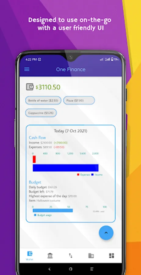 One Finance is a personal finance app designed to use on-the-go. You can add your daily incomes, expenses and other transactions with just a few clicks. One Finance app is a feature-rich offline logger for your daily transactions.